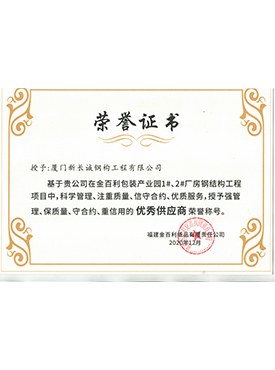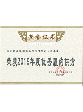 廈門新長(zhǎng)誠2019年度優(yōu)秀履約供方榮譽(yù)證書