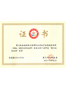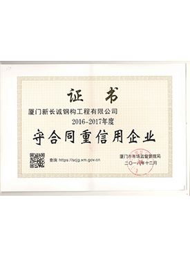 廈門新長(zhǎng)誠鋼構(gòu)工程有限公司守合同重信用企業(yè)2016-2017年度
