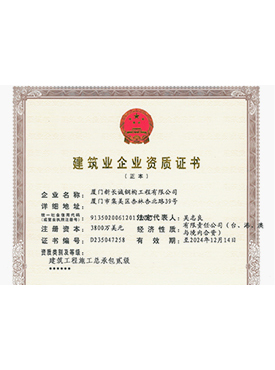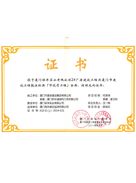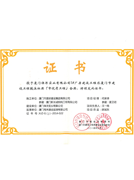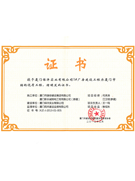 保灃1號廠房建設(shè)工程廈門市結(jié)構(gòu)優(yōu)質(zhì)工程證書